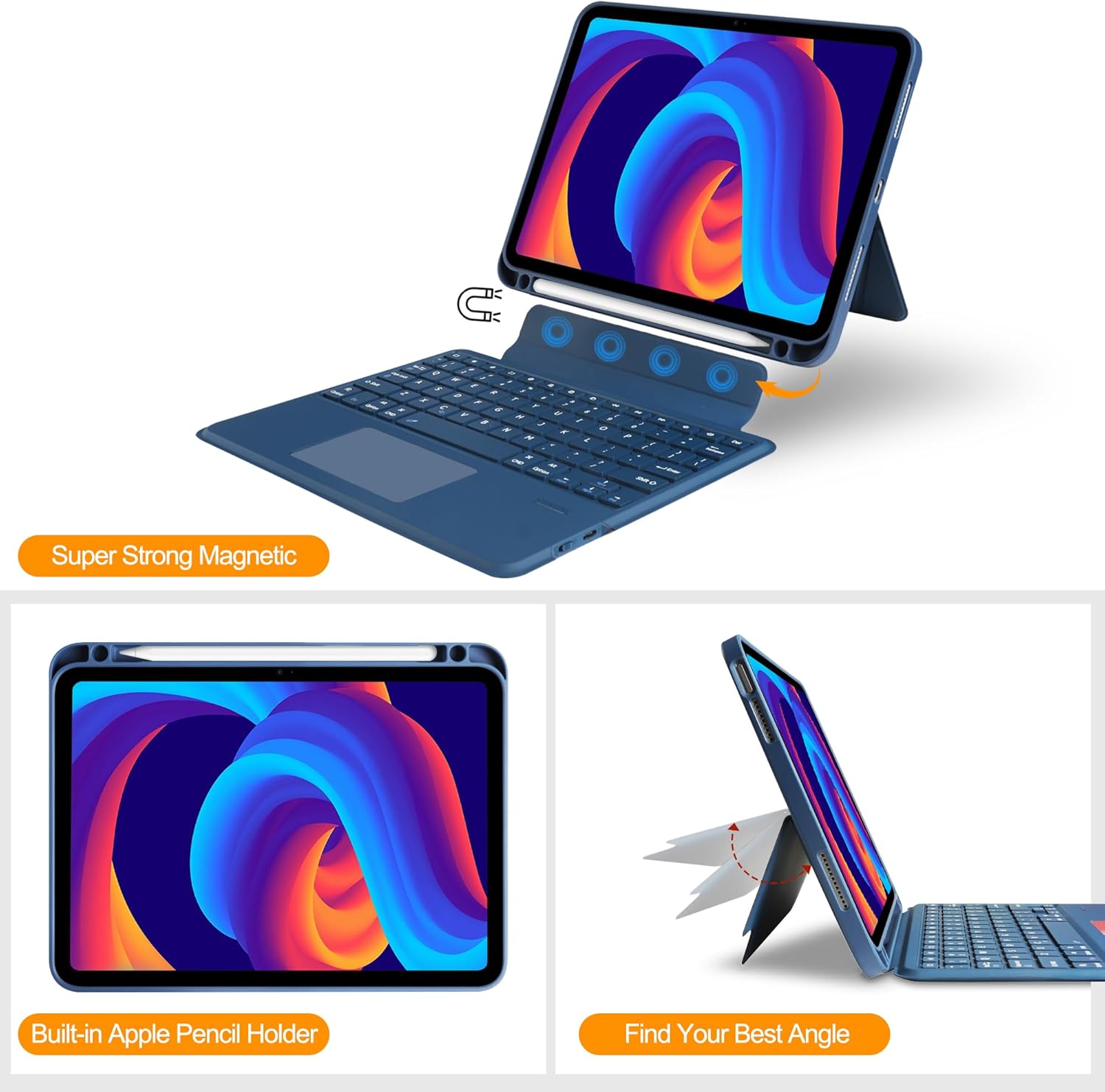 Compatible for iPad A16 11th Generation Case with Keyboard,Multi-Touch Trackpad,Wireless Detachable Keyboard ,Stand Cover with Pen Holder for iPad 11 inch A16 2025 &10th Gen 10.9" 2022