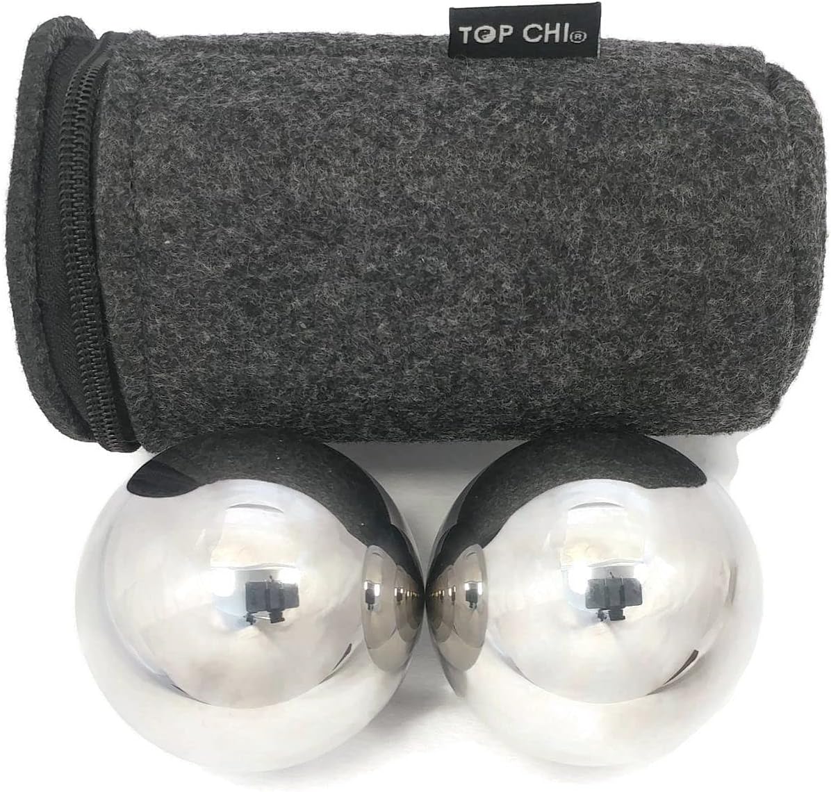 Top Chi baoding balls are a hand exercise tool that have been used for centuries since the ancient times in China. It includes two solid steel balls which are rotated around in the palm of your hand. Depending on your dexterity level and agility, it can be easy or challenging. But that is why they are fun and healthy to use! Practicing daily with Top Chi baoding balls exercises the muscles in the hand and wrist. After you get the hang of the basics, more advanced techniques can be tried such as spinning the balls without them touching, rotating them in reverse, and even 3 or 4 balls per hand. Basic or advanced, all will build hand coordination and strength. Doctors have recommended the use of baoding balls as they help manage hand and wrist conditions. Top Chi's baoding balls include a convenient zipper carry pouch so you can easily carry them with you to exercise whenever your hands are idle. The pouch also has a disc you can place between the balls so they stay silent if rattled. Made from high quality stainless steel, you can't ask for a more durable set of balls. They are solid so they do not chime like traditional baoding balls. Use them anywhere without disturbing other people.